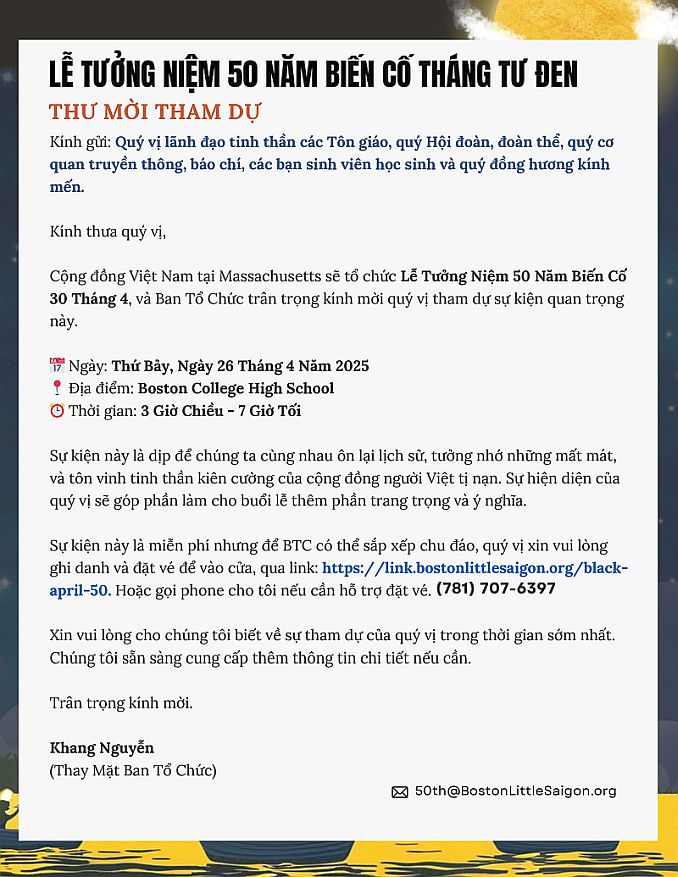 Ngày Tưởng Niệm 50 Năm Tháng Tư Đen
