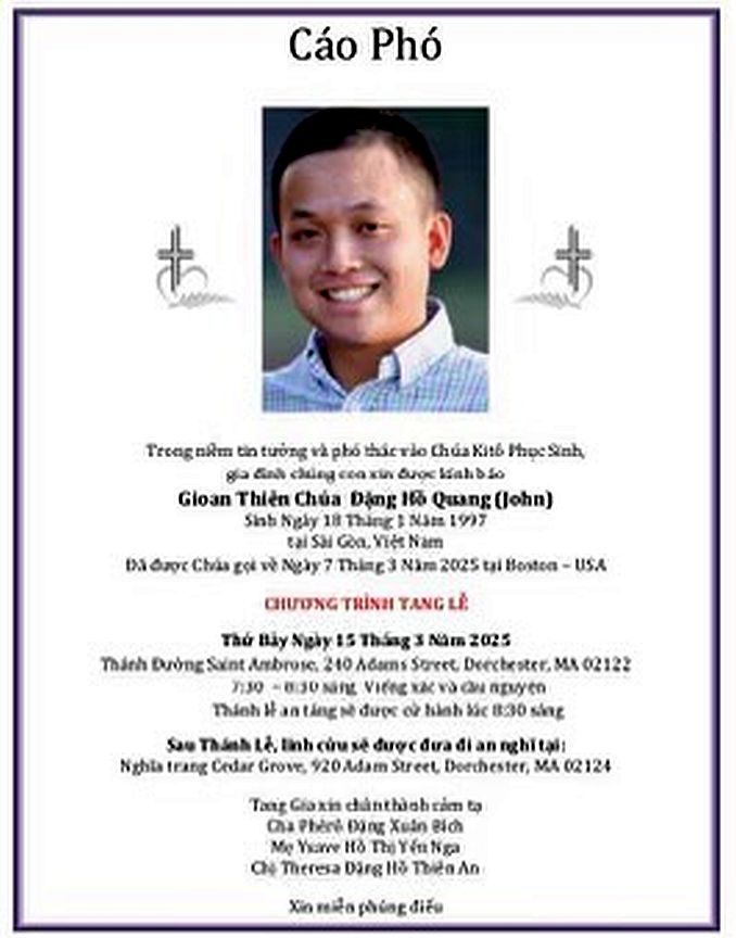 Cáo Phó & Chương Trình Tang Lễ Của Anh John Đặng Hồ Quang