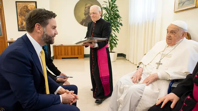 Trước khi ra mắt quần chúng lần cuối cùng nhân dịp Lễ Phục Sinh, Đức Giáo Hoàng đã bất ngờ tiếp phó TT JD Vance của Mỹ, trao đổi quà Phục Sinh. ĐGH tặng 3 quả trứng Phục Sinh bằng chocolat cho 3 đứa con của PTT Vance. PTT Vance là chính khách cuối cùng nói chuyện với Đức Giáo Hoàng.