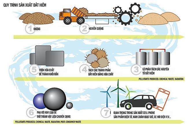 Thực ra đất hiếm không hiếm, và giá trị của đất hiếm cũng không cao, một ký đất hiếm trung bình khoảng $30 – $300, tùy thành phần và độ tinh khiết. Trở ngại duy nhất với đất hiếm là quá trình phân tách. Đó là mấu chốt của vấn đề, việc tinh luyện đất hiếm cần nhiều loại hóa chất, chúng gây rủi ro cao cho môi trường, ảnh hưởng sức khỏe cho muông thú và cho những người sống gần khu mỏ. Quá trình chiết xuất sản sinh ra thorium và uranium, có tính phóng xạ cao, chúng ngấm vào các dòng nước ngầm và sông suối và có thể tích lũy ở đó đến hàng trăm năm.