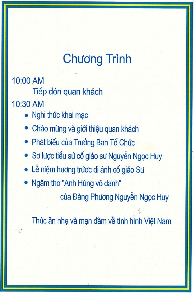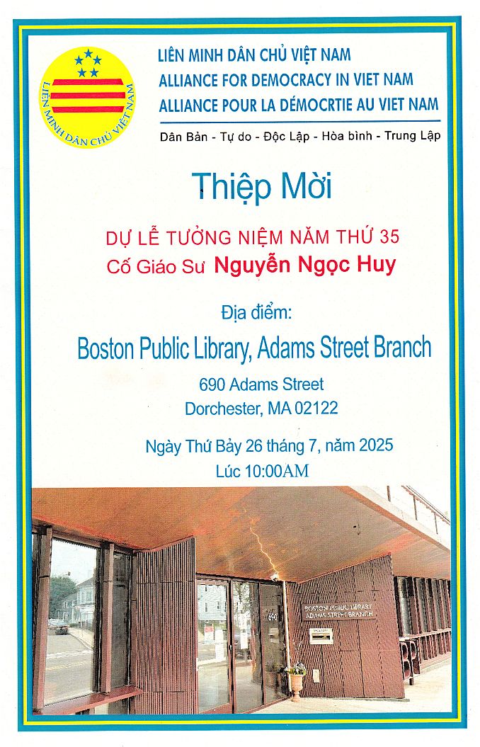 26/7/2025: Mời Tham Dự Lễ Tưởng Niệm Năm Thứ 35 Cố Giáo Sư Nguyễn Ngọc Huy 06/19/2025 Hoàng Hiếu Thông Báo 0