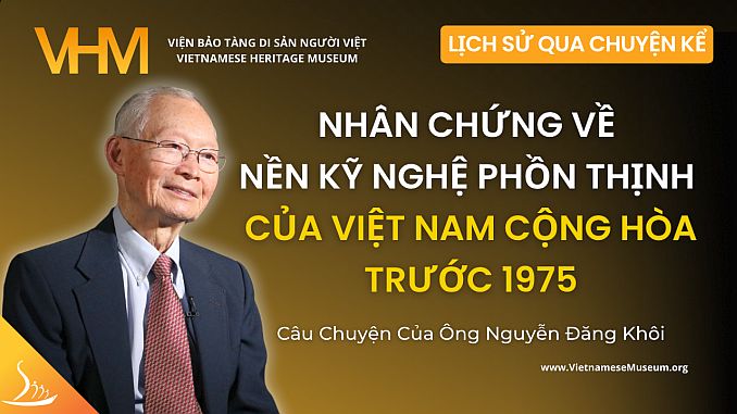 Ông Nguyễn Đăng Khôi, một nhân chứng lịch sử cận đại Việt, đã định cư tại Hoa Kỳ từ năm 1975. Trước đó, ông là một trong những du học sinh xuất sắc của miền Nam Việt Nam, tốt nghiệp Đại học Purdue và Cao học tại Đại học Stanford – hai trong số những trường danh tiếng bậc nhất Hoa Kỳ. Trở về nước, ông đã đảm nhiệm nhiều vị trí then chốt trong ngành phát triển kỹ nghệ – công nghiệp và các chương trình phát triển năng suất quốc gia của chính phủ Việt Nam Cộng Hòa: Tại Trung Tâm Khuếch Trương Kỹ Nghệ, ông đã trực tiếp tham gia đào tạo đội ngũ kỹ sư tầm vóc quốc tế, phát triển những dự án trọng điểm, và đặt nền móng cho ngành công nghiệp dầu khí đầu tiên tại Việt Nam. Từng cộng tác với các nhân vật chiến lược như Khương Hữu Điểu và Trần Văn Khởi, ông góp phần xây dựng một miền Nam phồn thịnh – canh tân – phát triển.