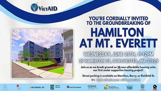 Kính mời tham dự Lễ Khởi công xây dựng chung cư Hamilton tại Mt. Everett, gồm 36 căn hộ giá rẻ mới đầu tiên — dành cho người lớn tuổi.