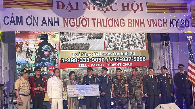 WESTMINSTER, California – Đại Nhạc Hội Cám Ơn Anh Người Thương Binh Việt Nam Cộng Hòa (VNCH) lần thứ 20, và tưởng niệm 50 năm người Việt tị nạn, diễn ra vào sáng Chủ Nhật, 27 Tháng Bảy, tại QD Venue, thành phố Westminster, đã sơ khởi nhận được quyên góp với số tiền $98,970, tính đến 6 giờ 20 phút chiều, giờ California, theo ban tổ chức.