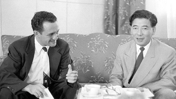 Tổng Thống Ngô Đình Diệm và giáo sư Wesley R. Fishel. (Hình chụp khoảng năm 1955 – Nguồn: https://vietnamproject.archives.msu.edu/objects/159-547-2735/)
