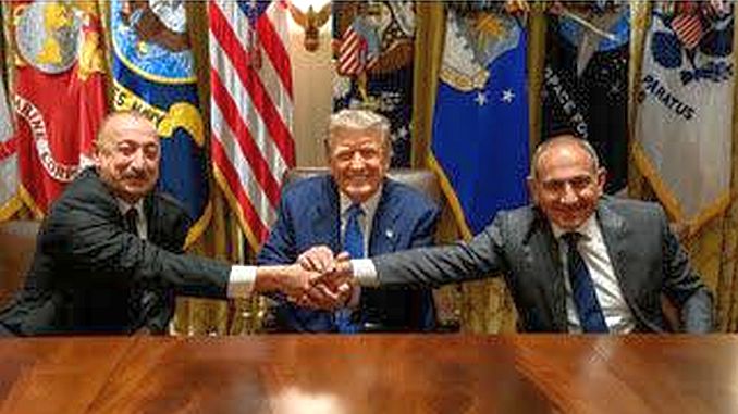 Ngày 8/8/2025 hai nhà lãnh đạo của hai nước Azerbaijan và Amernia cùng đến Tòa Bạch Ốc nhờ Tổng thống Donald Trump làm trung gian để ký thỏa thuận hòa bình với nhiều điểm đáng chú ý: mở hành lang xuyên lãnh thổ Armenia đặt tên Trump Route (đường mang tên Trump), cả hai nước tăng cường hợp tác an ninh và kinh tế với Hoa Kỳ, cả hai đồng thuận rút khỏi Nhóm Minsk (là một cơ chế quốc tế do Nga dẫn đầu được thành lập để làm trung gian hòa giải xung đột Nagorno-Karabakh giữa Armenia và Azerbaijan).
