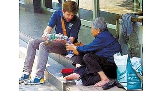 Ai đó đã chụp lại khoảnh khắc ấy, chàng thanh niên ngoại quốc ngồi bên lề đường, cùng ăn với một bà cụ nghèo, rồi đưa lên mạng xã hội Sina Weibo. Và cơn bão bùng lên! Người Trung Quốc rần rần chia sẻ, bình luận, tranh cãi. Bức ảnh làm lộ ra một khoảng trống trong tâm hồn người Hoa hiện đại trong thời CS: sự lạnh lùng, vô cảm, thờ ơ trước đồng loại. Ai nấy chỉ biết cắm đầu vào điện thoại, rảo bước như máy, chỉ sống với cái ví của mình, còn người nghèo, người già, người khổ? Mặc xác!