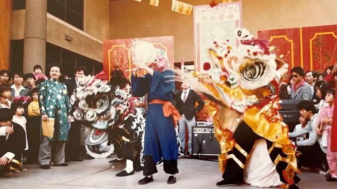 Múa lân đón Tết Quý Hợi 1983 của người Việt tại Los Angeles. (Ảnh của Bùi Văn Phú)