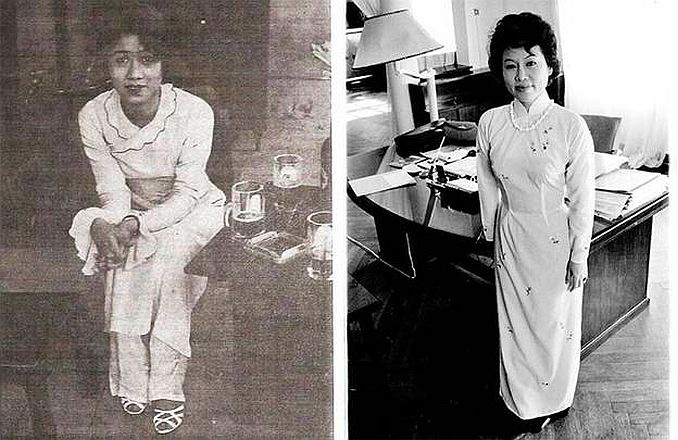Người mẩu Nguyễn Thị Hậu (trái) “Người thiếu nữ đầu tiên mặc quần áo lối mới kiểu Lemur” – (phải) Thị Trưởng Nguyễn Thị Hậu
