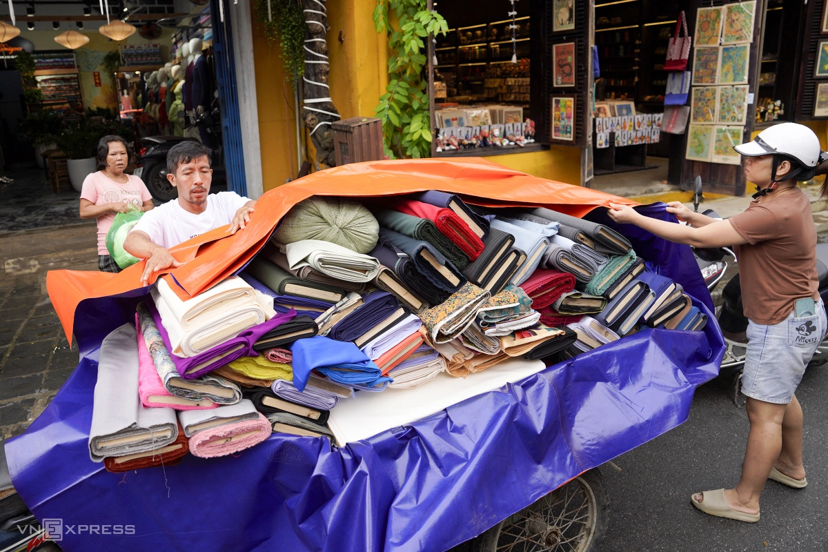 Đến chiều nay, hàng loạt tuyến đường nước tiếp tục dâng cao. Chủ shop vải trên đường Trần Phú, nối từ chợ Hội An về chùa Cầu, vội xếp hàng chục cây vải lên xe kéo ra khỏi phố cổ, đi gửi ở nhà cao ráo hơn, để phòng lũ dâng trong đêm, thiệt hại lớn.