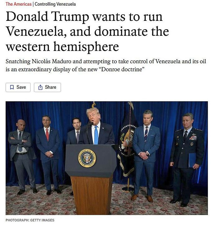 Tờ Economist cho rằng “Ông Trump muốn duy trì thế độc tôn ở Tây bán cầu” do đó phải kiểm soát và “vận hành” Venezuela.