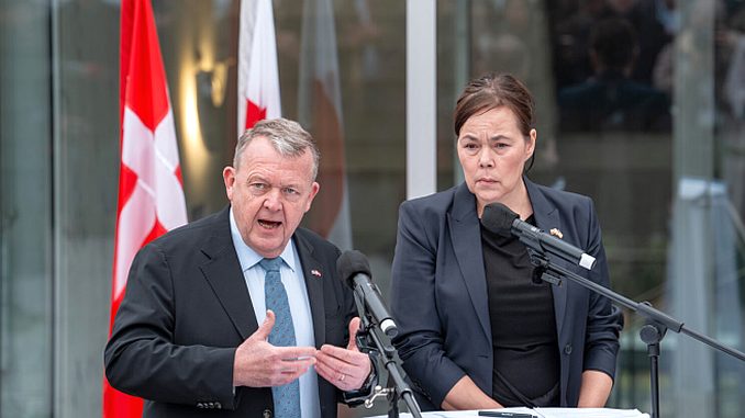 Bộ Trưởng Ngoại Giao Lars Lokke Rasmussen (trái) của Đan Mạch và Bộ Trưởng Ngoại Giao Vivian Motzfeldt của Greenland họp báo tại Đại Sứ Quán Đan Mạch hôm 14 Tháng Giêng tại Washington, DC. Sau cuộc gặp Phó Tổng Thống JD Vance và Ngoại Trưởng Marco Rubio. (Hình minh họa: Andrew Leyden/Getty Images)