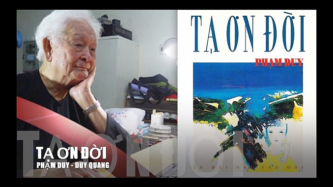 Cảm ơn nhạc sĩ Phạm Duy, vì ông đã tặng cho nhiều thế hệ người Việt Nam ca khúc Tạ Ơn Đời, cùng hàng ngàn ca khúc khác, mà mỗi ca khúc đều là một tuyệt phẩm.