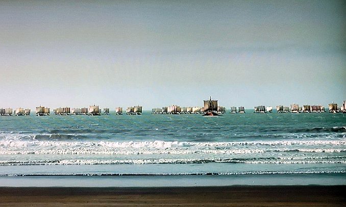 Đoàn tàu thuyền hơn 1000 chiếc hùng hậu đến bao vây Troie để đòi hoàng tử Pâris phải trả Helene về cho Menelas