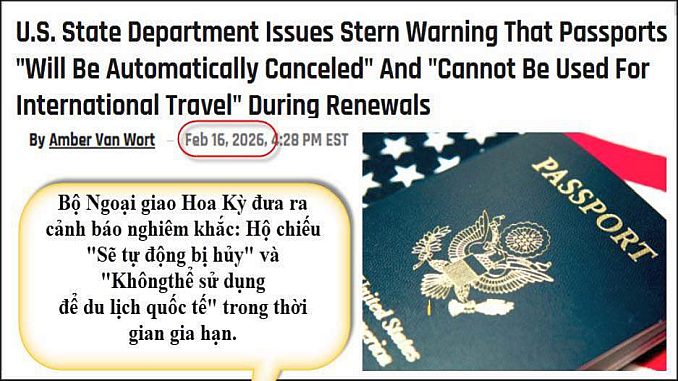 Bộ Ngoại giao Hoa Kỳ đưa ra cảnh báo nghiêm khắc: Hộ chiếu “Sẽ tự động bị hủy” và “Không thể sử dụng để du lịch quốc tế” trong thời gian gia hạn.