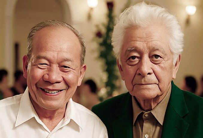Thi sĩ Phạm Thiên Thư và nhạc sĩ Phạm Duy. (Ảnh: Hiếu Dũng)