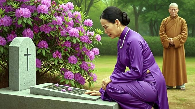 Tôi quỳ trước ngôi mộ, đưa tay lên ngực làm dấu thánh giá rồi khóc sụt sùi. Một cơn gió xào xạc làm chao động cả rừng cây. Dường như tôi đã ngồi ở đây lâu lắm. Khi lau nước mắt đứng lên tôi không còn thấy thầy trụ trì. Có lẽ thầy muốn để tôi ngồi khóc một mình mà thổn thức với người xưa, hay là muốn tránh xa chuyện vui buồn của thế tục.