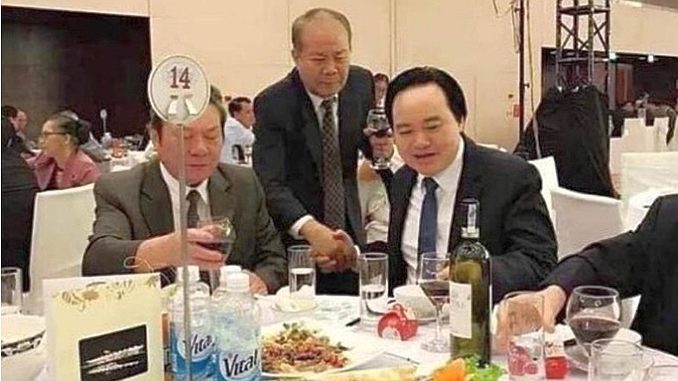 Bộ trưởng Phùng Xuân Nhạ bắt tay thầy cũ nhưng không thèm ngẩng lên nhìn mặt. (Ảnh trên mạng)