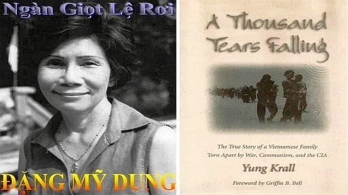 Người đàn bà viết cuốn sách này tên là Đặng Mỹ Dung và cuốn sách có tựa đề là Ngàn Giọt Lệ Rơi. Nguyên tác Anh ngữ là A Thousand Tears Falling. Bà Yung Krall sáng tác theo thể tự truyện dựa vào cuộc đời của cha mẹ rồi đến chính cuộc đời của tác giả. Tất cả mọi danh tính đều giữ nguyên như là một sử liệu.