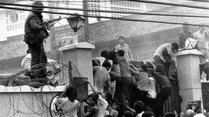 Mỗi khi người Mỹ hồi tưởng về Chiến tranh Việt Nam, ký tự tập thể của họ thường dội ngay về những thước phim hoảng loạn vào tháng Tư năm 1975. Chúng ta bị ám ảnh bởi tiếng cánh quạt trực thăng phành phạch trên nóc Tòa Đại sứ Mỹ ở Sài Gòn. Ta thấy những bàn tay tuyệt vọng cào xé cánh cổng sắt, cảnh đốt tài liệu vội vã, và nhịp thở dồn dập của một đế quốc đang cuống cuồng tháo chạy.