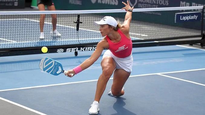 Cầu thủ Pickleball Catherine Parenteau thi đấu tranh giải Pro Womens Doubles vào tháng 11/2023 ở Dallas, Texas. (Ảnh của Bruce Yeung/Getty Images)