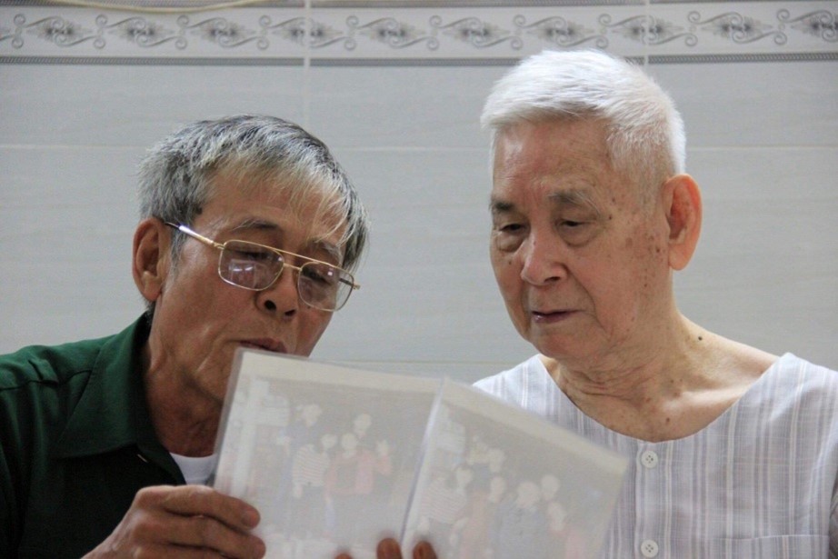 Ông Ngọc (trái), bộ đội miền Bắc, gặp lại bác sĩ Lựu, sĩ quan quân y VNCH sau 44 năm mất liên lạc. (Nguồn: Nguyễn Thọ)