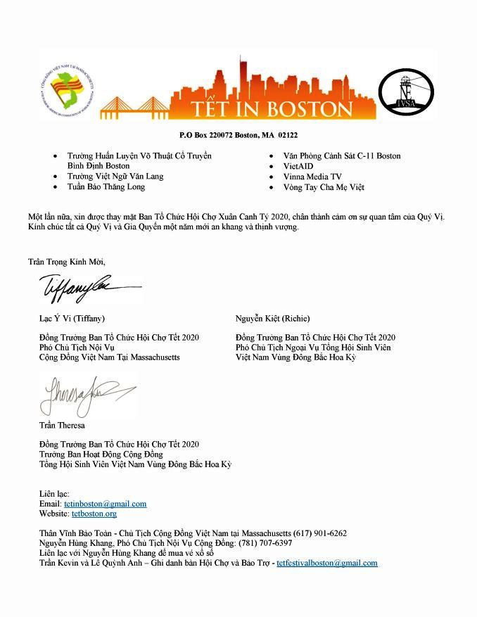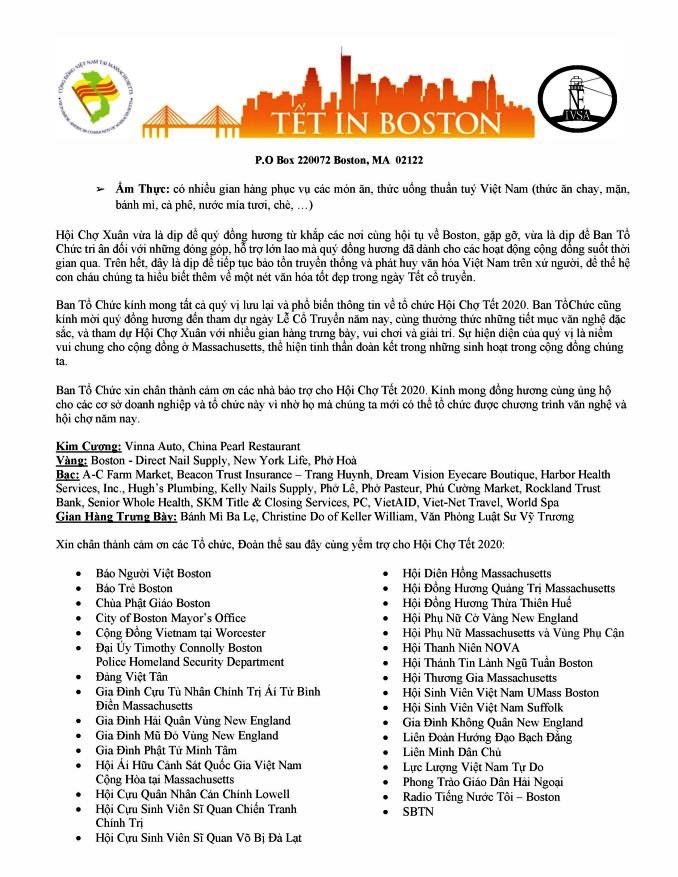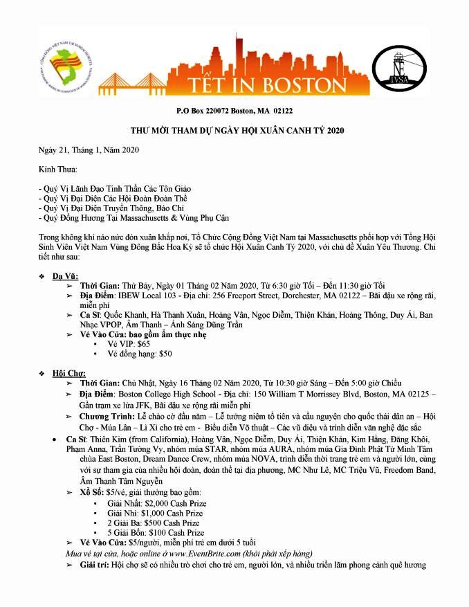 16/2/2020: Cộng Đồng Việt Nam Tại Massachusetts Mời Tham Dự Ngày Hội Xuân Canh Tý 2020 01/28/2020 Hoàng Hiếu Thông Báo 0 All Posts
