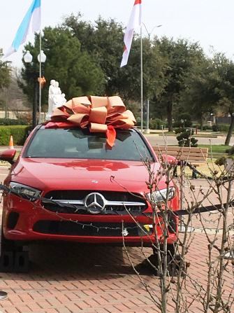 TTM. Tôi nhìn thấy chiếc xe Mercedes màu đỏ đậu trong sân nhà thờ sang trọng quá. Ai bảo trợ giải vé số Tết năm nay?