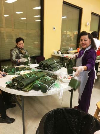 Ngay sau Lễ Giáng Sinh, các linh mục ở giáo xứ (GX) Các Thánh Tử Đạo (CTTĐ) tại Arlington đã kêu gọi giáo dân sửa soạn đón Tết, từ việc mua vé số đến giúp gói bánh Chưng bánh Tét. Tôi cũng thấy chiếc xe Mercedes màu đỏ đậu ngay trước sân nhà thờ để cho bà con biết năm nay ai trúng độc đắc sẽ được làm chủ chiếc xe này. Cha sở còn thông báo trong nhà thờ rằng ai trúng độc đắc, làm ơn nhận xe đưa về đừng tặng lại nhà xứ. Điều làm tôi chú ý nhiều nhất là việc gói bánh ăn tết ở nhà xứ. Có rất nhiều giáo dân đã sốt sắng tham gia việc gói bánh. Nhiều buổi đưa ông cụ bố vợ tôi đi lễ sáng, sau lễ tôi đã lân la ở lại, vào hội trường quan sát bà con hăng hái gói bánh Tết. Giáo xứ này và nhiều giáo xứ Công Giáo quanh vùng đã tạo ra được truyền thống cho giáo dân dấn thân phục vụ qua việc gói bánh Chưng bánh Tét ăn Tết. Mỗi sáng sớm, sau Lễ, vài chục giáo dân tụ tập tại hội trường dùng bữa sáng, như ăn cháo, trước khi bắt tay vào việc. Sinh hoạt gói bánh bắt đầu từ chiều hôm trước, theo một chị trong nhà bếp, “Chúng em chia công tác cho người ngâm gạo nếp và đậu xanh từ 5 chiều hôm trước, rồi có người đến hội trường từ sáng tinh mơ để đổ nước cho gạo và đậu khô ráo trước khi gói.” Ngâm gạo ngâm đậu rồi cho ráo nước là việc dễ. Trước khi gói bánh, cần có nhiều người đến sớm để lau lá chuối xanh. Lá chuối xanh đông lạnh được mua từ các tiệm thực phẩm Việt quanh vùng. Tôi hỏi vài bác “Lá chuối nhập cảng từ Việt Nam hay các nước Nam Mỹ?” Không ai có câu trả lời. Chưa biết chừng nếu dùng lá chuối từ Việt Nam, bánh Chưng/bánh Tét lại được tăng thêm hương vị quê xưa. Chị Q.N. một phụ nữ trung niên cho tôi hay, “Em đã tham gia gói bánh chưng cả gần chục năm rồi. Sáng nay em đến hội trường lúc 5 giờ sáng xếp lá chuối vào khung sẵn để bà con làm công tác gói bánh không tốn thời giờ xếp lá vào khuôn.”
