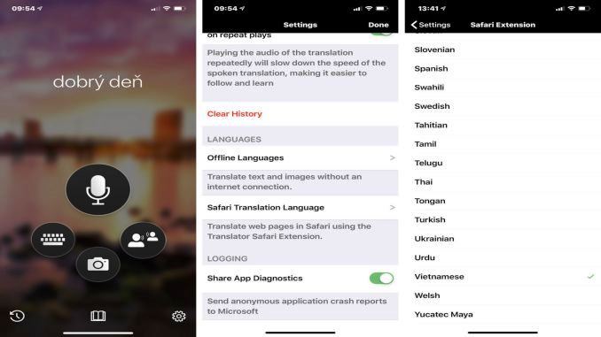 Kế tiếp, bạn chạy app Microsoft Translator rồi bấm lên biểu tượng bánh xe ở phía dưới màn hình để vào Settings rồi chọn cài các gói ngôn ngữ cần dịch, thí dụ tiếng Anh, tiếng Việt, tiếng Hàn… ở mục Offline Languages. Bạn tiếp tục vào mục Safari Translation Language để chọn ngôn ngữ đích (to) là Vietnamese. Sau đó, đóng app Microsoft Translator là xong phần xác lập cho việc chuyển đổi ngôn ngữ tự động.