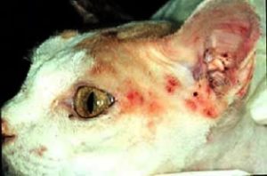 7*- Bệnh sốt do mèo cào: (maladie des griffes du chat, cat scratch fever) móng mèo rất bẩn và thường chứa vi khuẩn Bartonella henselae. Vết thương do mèo (4 cẳng) cào hay cắn dễ bị nhiễm trùng làm sưng hạch (lymphadénite régionale) như vùng nách hoặc vùng bẹn, đôi khi kèm theo sốt nóng, ói mửa, đau cổ họng. Bệnh tự hết sau vài tuần, nhưng phải cần nhiều tháng các hạch mới hết sưng.