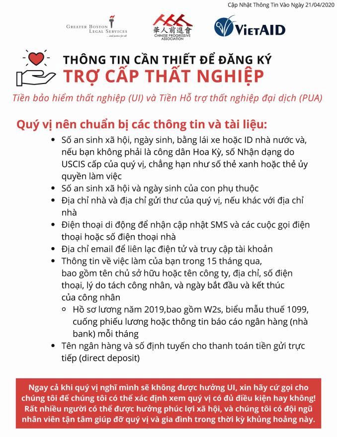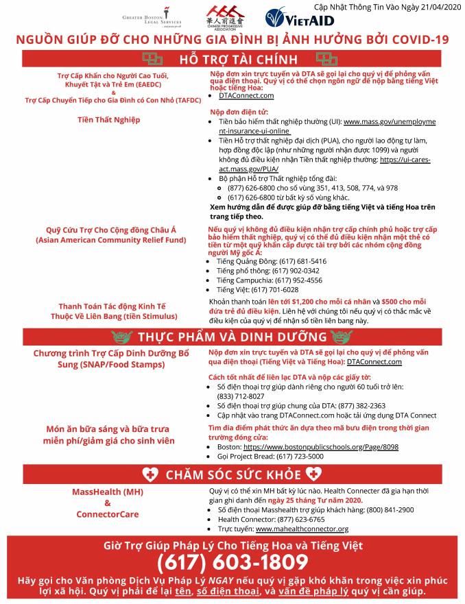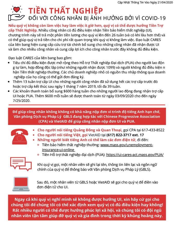 COVID-19: Nguồn Hổ Trợ Cho Gia Đình & Trợ Cấp Thất Nghiệp Cho Cư Dân Tại Massachusetts