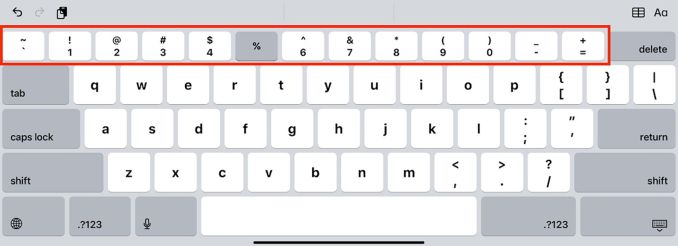 Trên bàn phím iPad, bạn sẽ thấy các ký tự luôn xuất hiện trên đầu của mỗi chữ số. Khi bấm bình thường là nhập số, khi vuốt xuống một chút là nhập ký tự mà không cần chuyển đổi bàn phím.