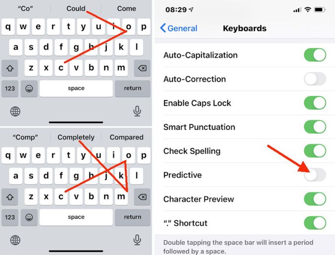 Để tắt tính năng QuickType, bạn vào Setting → General → Keyboard rồi gạt nút Predictive sang Off.