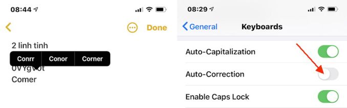 Bạn có thể tắt luôn tính năng tự động sửa bằng cách vào Setting → General → Keyboard rồi gạt nút Auto-correction sang Off.